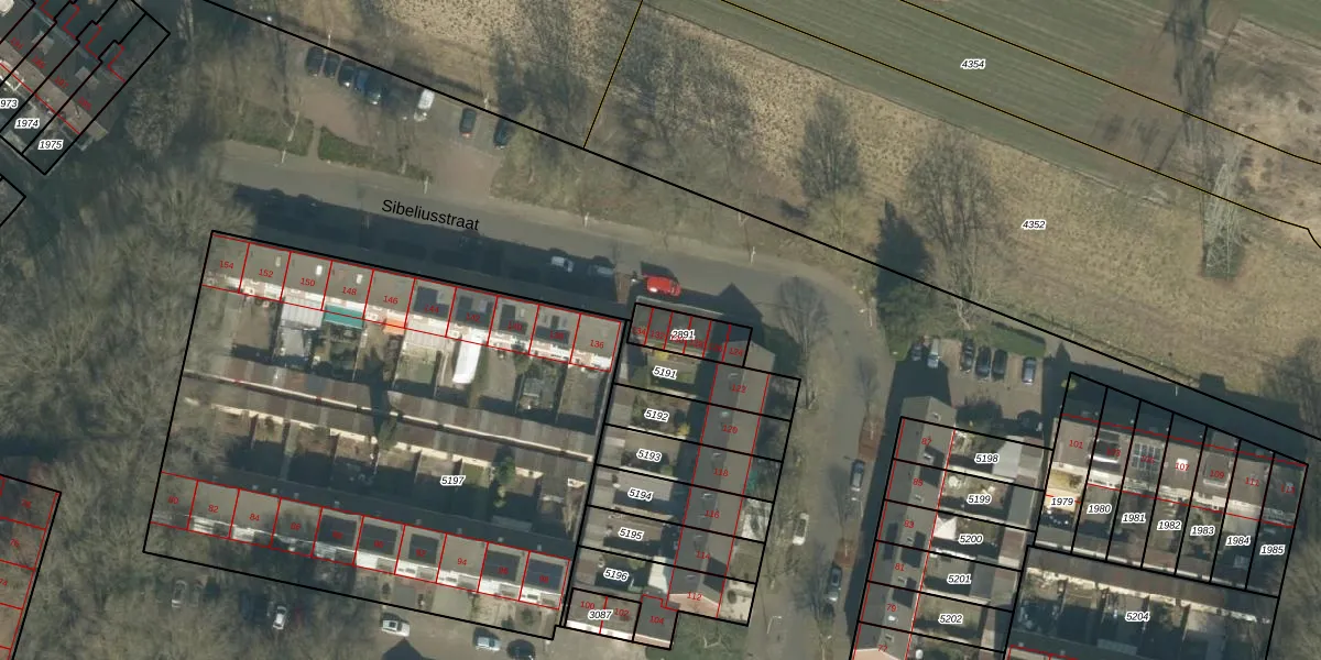 Het perceel waarop Sibeliusstraat 132 staat heeft een oppervlakte van 110 m². Dit is een middelgroot perceel. De perceeloppervlakte wordt geregistreerd door het Kadaster. Gedetailleerde informatie over de maten van dit perceel kunt u vinden in het rapport Kadastrale kaart met maatvoering van Sibeliusstraat 132.