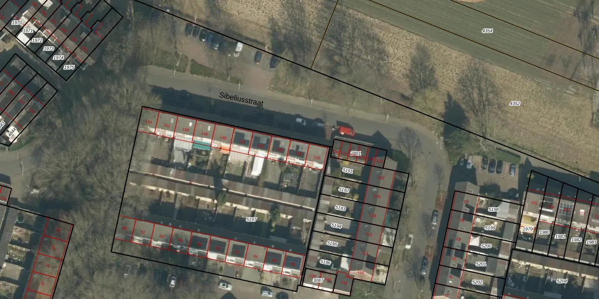 Sibeliusstraat 138 is gelegen op kadastraal perceel TBG01S5197. Deze kadastrale aanduiding is uniek en wordt gebruikt door het Kadaster om eigendomsrechten en andere zakelijke rechten vast te leggen. Het perceel maakt onderdeel uit van de kadastrale gemeente Tilburg.