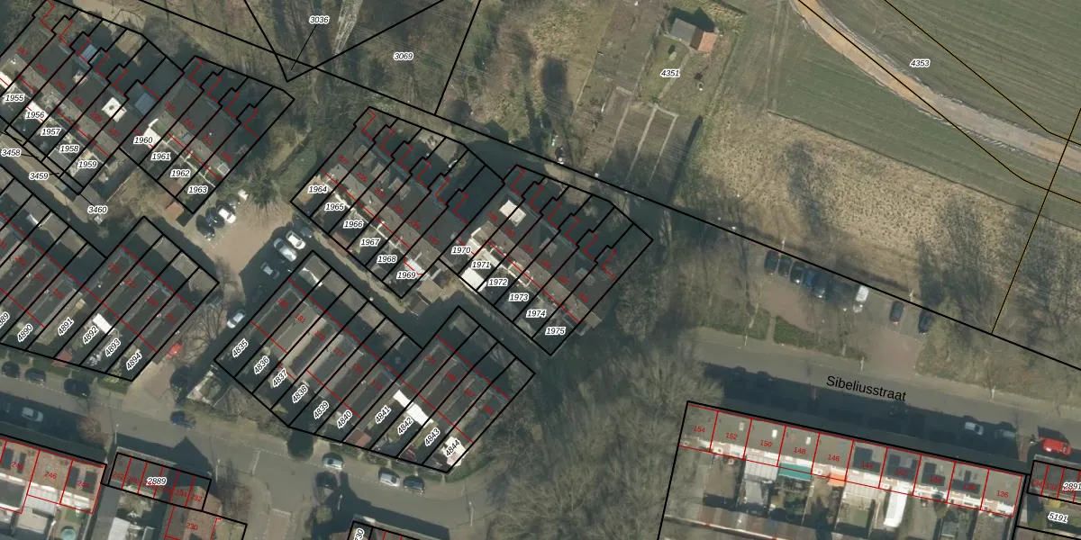 Sibeliusstraat 189 is gelegen op kadastraal perceel TBG01S1973. Deze kadastrale aanduiding is uniek en wordt gebruikt door het Kadaster om eigendomsrechten en andere zakelijke rechten vast te leggen. Het perceel maakt onderdeel uit van de kadastrale gemeente Tilburg.