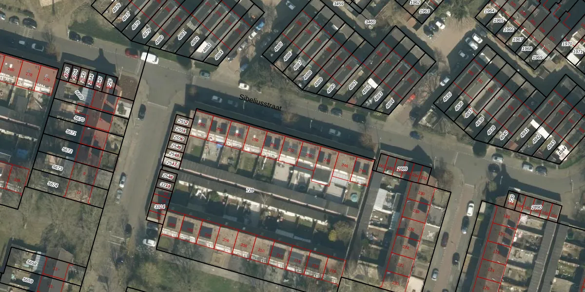 Het perceel waarop Sibeliusstraat 252 staat heeft een oppervlakte van 4248 m². Dit is een zeer groot perceel. De perceeloppervlakte wordt geregistreerd door het Kadaster. Gedetailleerde informatie over de maten van dit perceel kunt u vinden in het rapport Kadastrale kaart met maatvoering van Sibeliusstraat 252.