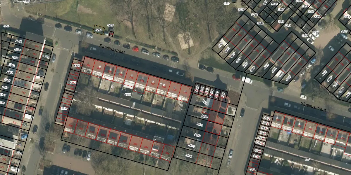 Het perceel waarop Sibeliusstraat 278 staat heeft een oppervlakte van 3215 m². Dit is een zeer groot perceel. De perceeloppervlakte wordt geregistreerd door het Kadaster. Gedetailleerde informatie over de maten van dit perceel kunt u vinden in het rapport Kadastrale kaart met maatvoering van Sibeliusstraat 278.