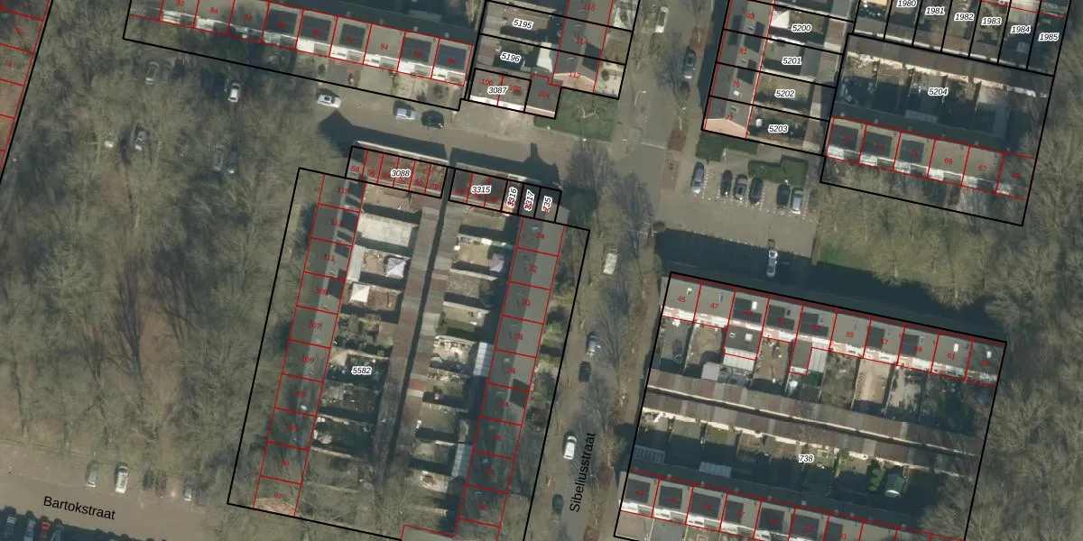 Het perceel waarop Sibeliusstraat 32 staat heeft een oppervlakte van 3503 m². Dit is een zeer groot perceel. De perceeloppervlakte wordt geregistreerd door het Kadaster. Gedetailleerde informatie over de maten van dit perceel kunt u vinden in het rapport Kadastrale kaart met maatvoering van Sibeliusstraat 32.