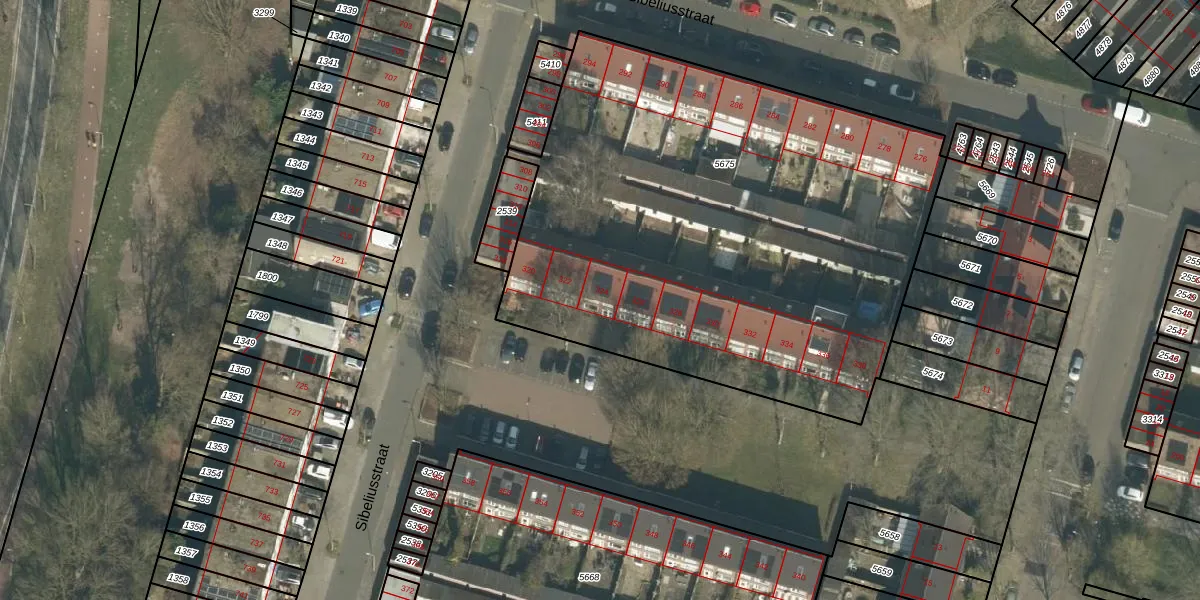 Het perceel waarop Sibeliusstraat 324 staat heeft een oppervlakte van 3215 m². Dit is een zeer groot perceel. De perceeloppervlakte wordt geregistreerd door het Kadaster. Gedetailleerde informatie over de maten van dit perceel kunt u vinden in het rapport Kadastrale kaart met maatvoering van Sibeliusstraat 324.