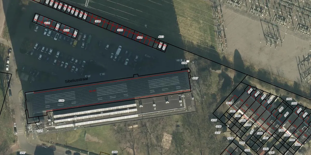Het perceel waarop Sibeliusstraat 345 staat heeft een oppervlakte van 1566 m². Dit is een zeer groot perceel. De perceeloppervlakte wordt geregistreerd door het Kadaster. Gedetailleerde informatie over de maten van dit perceel kunt u vinden in het rapport Kadastrale kaart met maatvoering van Sibeliusstraat 345.