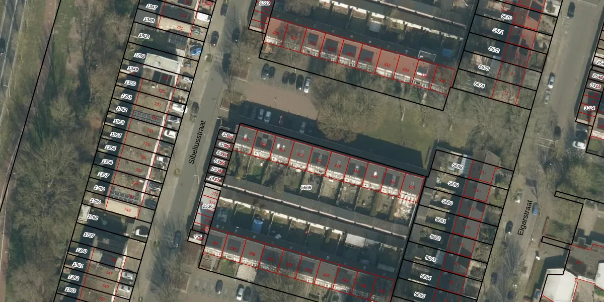 Het perceel waarop Sibeliusstraat 352 staat heeft een oppervlakte van 3210 m². Dit is een zeer groot perceel. De perceeloppervlakte wordt geregistreerd door het Kadaster. Gedetailleerde informatie over de maten van dit perceel kunt u vinden in het rapport Kadastrale kaart met maatvoering van Sibeliusstraat 352.