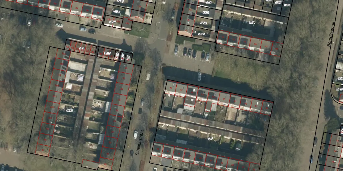 Het perceel waarop Sibeliusstraat 45 staat heeft een oppervlakte van 3169 m². Dit is een zeer groot perceel. De perceeloppervlakte wordt geregistreerd door het Kadaster. Gedetailleerde informatie over de maten van dit perceel kunt u vinden in het rapport Kadastrale kaart met maatvoering van Sibeliusstraat 45.