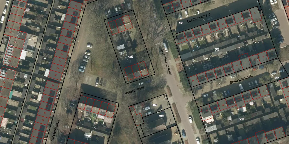 Sierteeltstraat 1 is gelegen op kadastraal perceel TBG01Y1919. Deze kadastrale aanduiding is uniek en wordt gebruikt door het Kadaster om eigendomsrechten en andere zakelijke rechten vast te leggen. Het perceel maakt onderdeel uit van de kadastrale gemeente Tilburg.