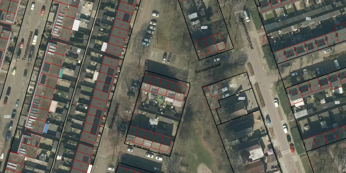 Het perceel waarop Sierteeltstraat 4 staat heeft een oppervlakte van 1202 m². Dit is een zeer groot perceel. De perceeloppervlakte wordt geregistreerd door het Kadaster. Gedetailleerde informatie over de maten van dit perceel kunt u vinden in het rapport Kadastrale kaart met maatvoering van Sierteeltstraat 4.