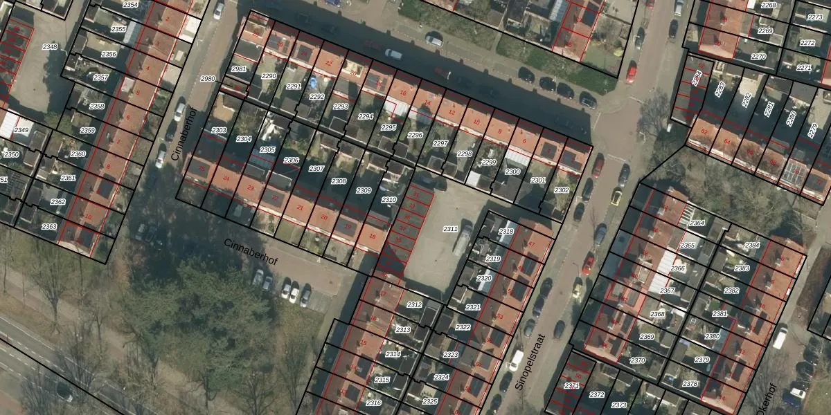 Het perceel waarop Sinopelstraat 33 staat heeft een oppervlakte van 635 m². Dit is een groot perceel. De perceeloppervlakte wordt geregistreerd door het Kadaster. Gedetailleerde informatie over de maten van dit perceel kunt u vinden in het rapport Kadastrale kaart met maatvoering van Sinopelstraat 33.