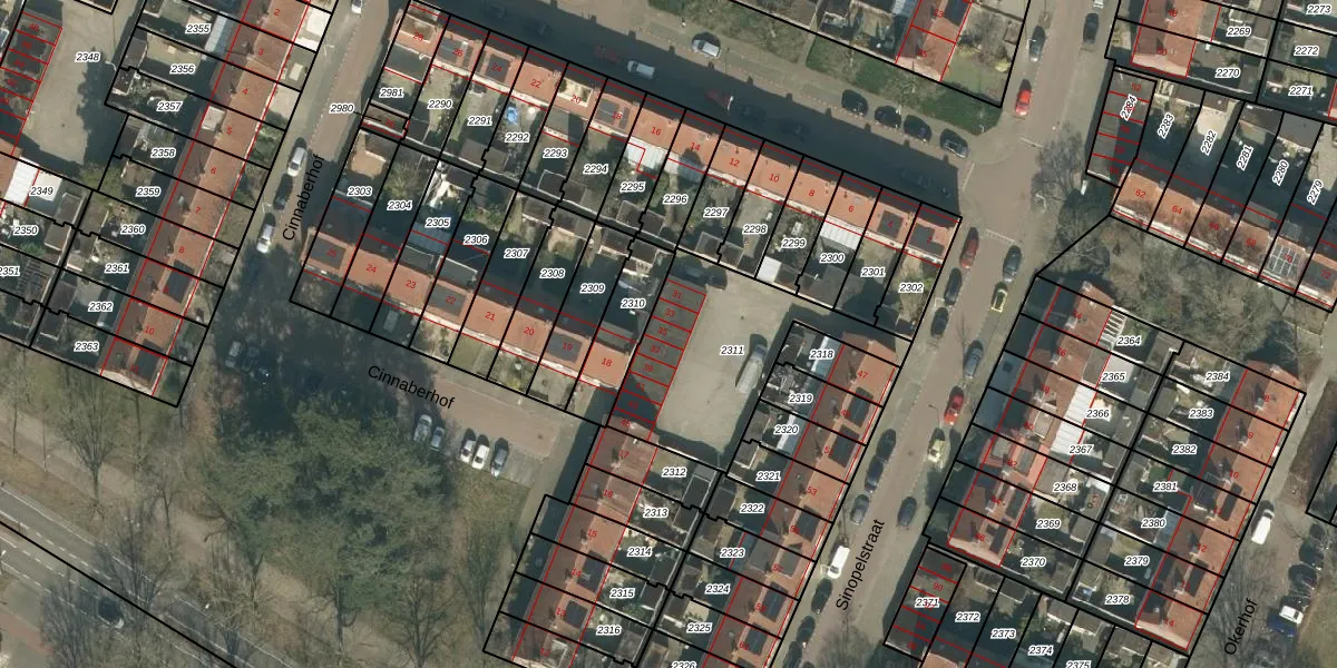 Het perceel waarop Sinopelstraat 35 staat heeft een oppervlakte van 635 m². Dit is een groot perceel. De perceeloppervlakte wordt geregistreerd door het Kadaster. Gedetailleerde informatie over de maten van dit perceel kunt u vinden in het rapport Kadastrale kaart met maatvoering van Sinopelstraat 35.