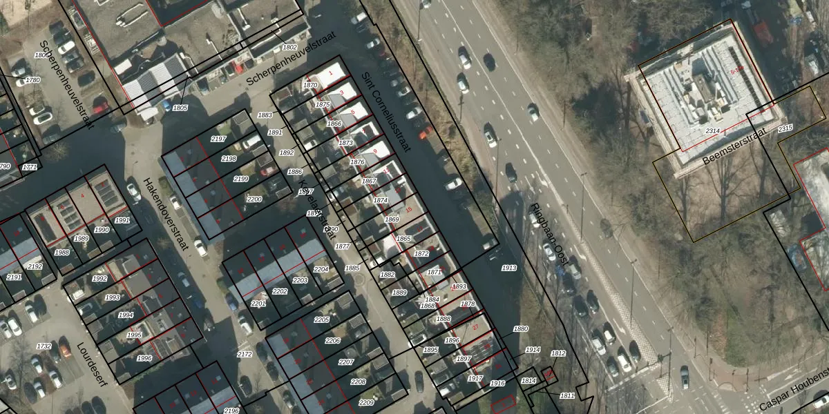 Het perceel waarop Sint Corneliusstraat 15 staat heeft een oppervlakte van 94 m². Dit is een klein perceel. De perceeloppervlakte wordt geregistreerd door het Kadaster. Gedetailleerde informatie over de maten van dit perceel kunt u vinden in het rapport Kadastrale kaart met maatvoering van Sint Corneliusstraat 15.