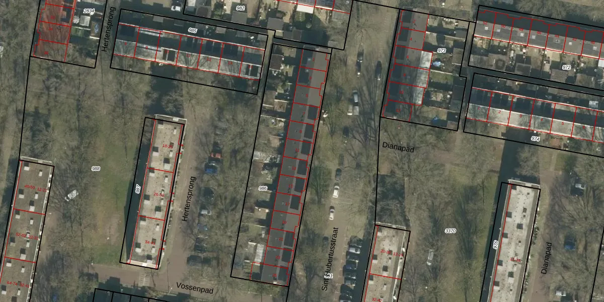 Het perceel waarop Sint Hubertusstraat 11 staat heeft een oppervlakte van 1566 m². Dit is een zeer groot perceel. De perceeloppervlakte wordt geregistreerd door het Kadaster. Gedetailleerde informatie over de maten van dit perceel kunt u vinden in het rapport Kadastrale kaart met maatvoering van Sint Hubertusstraat 11.