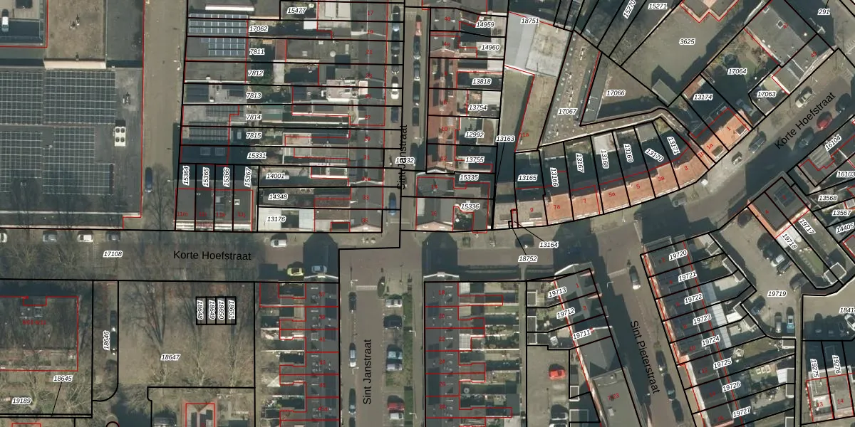 Het perceel waarop Sint Janstraat 16 staat heeft een oppervlakte van 167 m². Dit is een middelgroot perceel. De perceeloppervlakte wordt geregistreerd door het Kadaster. Gedetailleerde informatie over de maten van dit perceel kunt u vinden in het rapport Kadastrale kaart met maatvoering van Sint Janstraat 16.