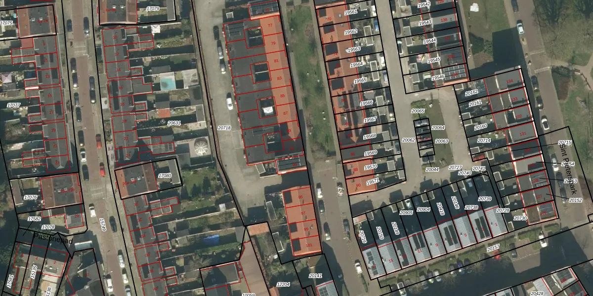 Het perceel waarop Sint Janstraat 91 staat heeft een oppervlakte van 2825 m². Dit is een zeer groot perceel. De perceeloppervlakte wordt geregistreerd door het Kadaster. Gedetailleerde informatie over de maten van dit perceel kunt u vinden in het rapport Kadastrale kaart met maatvoering van Sint Janstraat 91.