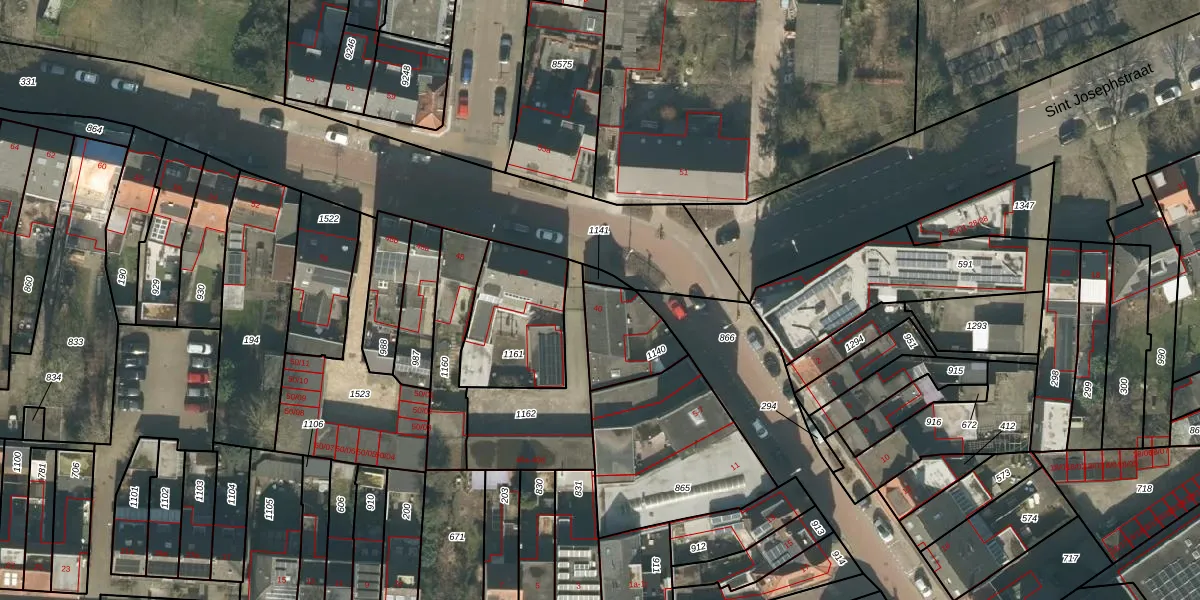 Sint Josephstraat 40 is gelegen op kadastraal perceel TBG01X1140. Deze kadastrale aanduiding is uniek en wordt gebruikt door het Kadaster om eigendomsrechten en andere zakelijke rechten vast te leggen. Het perceel maakt onderdeel uit van de kadastrale gemeente Tilburg.