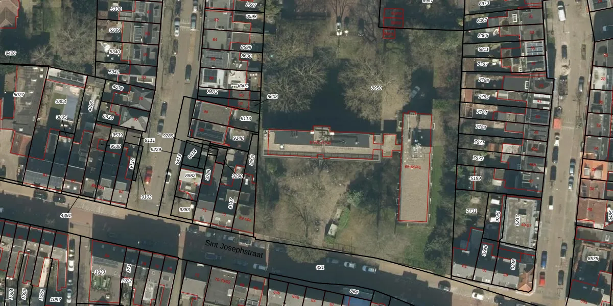 Het perceel waarop Sint Josephstraat 67-04 staat heeft een oppervlakte van 5766 m². Dit is een zeer groot perceel. De perceeloppervlakte wordt geregistreerd door het Kadaster. Gedetailleerde informatie over de maten van dit perceel kunt u vinden in het rapport Kadastrale kaart met maatvoering van Sint Josephstraat 67-04.