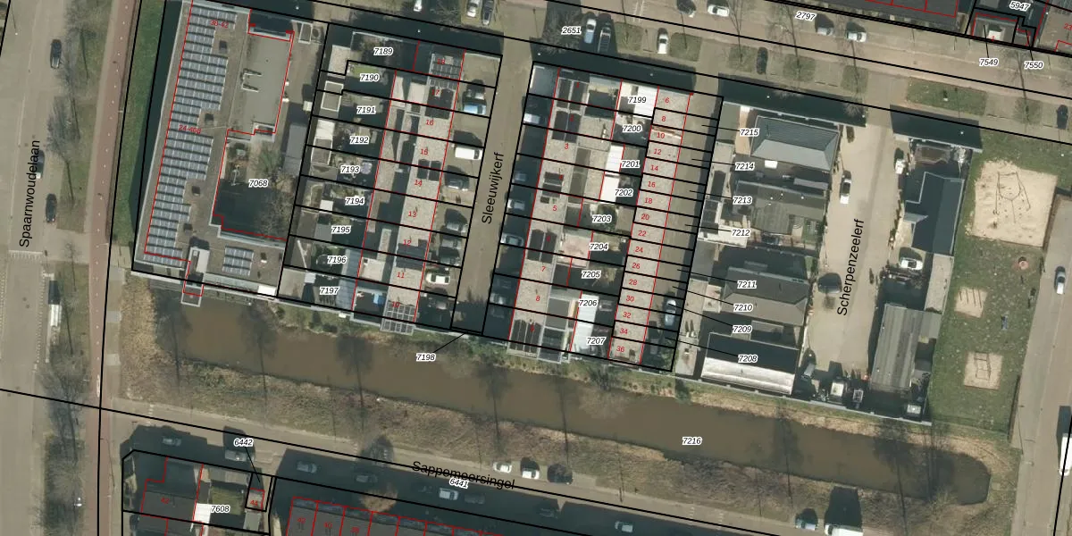 Sleeuwijkerf 7 is gelegen op kadastraal perceel TBG01AG7205. Deze kadastrale aanduiding is uniek en wordt gebruikt door het Kadaster om eigendomsrechten en andere zakelijke rechten vast te leggen. Het perceel maakt onderdeel uit van de kadastrale gemeente Tilburg.