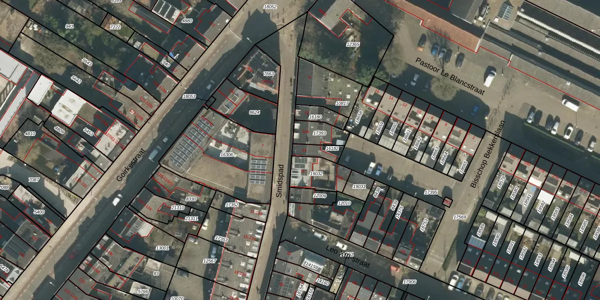 Smidspad 14 is gelegen op kadastraal perceel TBG01N16182. Deze kadastrale aanduiding is uniek en wordt gebruikt door het Kadaster om eigendomsrechten en andere zakelijke rechten vast te leggen. Het perceel maakt onderdeel uit van de kadastrale gemeente Tilburg.