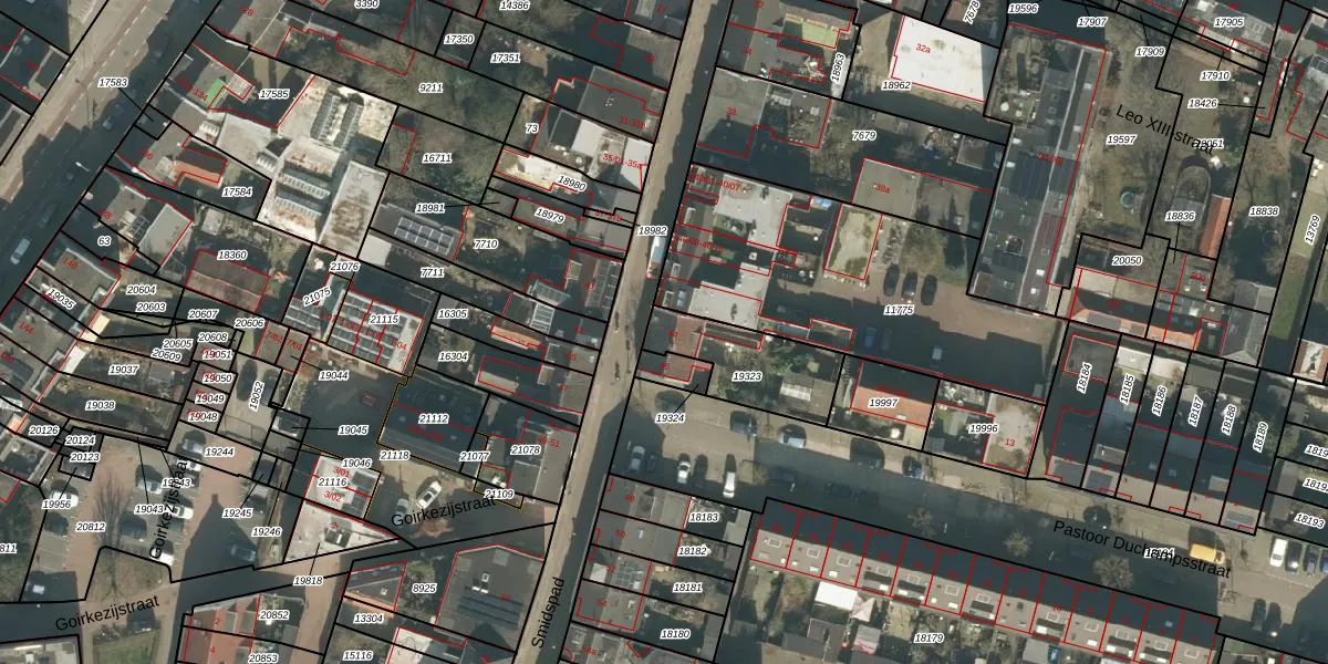Het adres is gelegen op perceel 19323 in de sectie N en de kadastrale gemeente Tilburg. De kadastrale aanduiding is aldus TBG01-N-19323. Het perceel is kleiner dan gemiddeld in Tilburg. Het perceel is 281 m² groot, terwijl het gemiddelde ligt op 1264,91 m². De grootste perceeloppervlakte in de kadastrale gemeente is 87,4 ha. De kleinste oppervlakte bedraagt 0 m². Er zijn geen andere adressen aanwezig op het perceel. In de Basisregistratie Kadaster (BRK) werden de grenzen van het perceel geregistreerd op 21-08-2012.