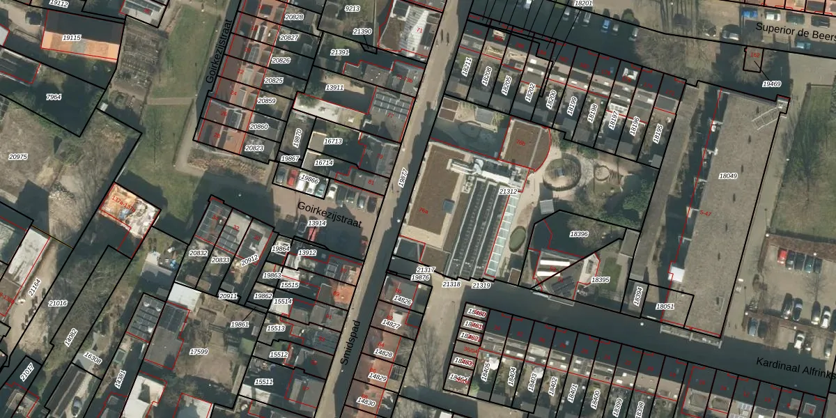 Het adres is gelegen op perceel 21312 in de sectie N en de kadastrale gemeente Tilburg. De kadastrale aanduiding is aldus TBG01-N-21312. De gemiddelde perceeloppervlakte in de kadastrale gemeente Tilburg is 1264,33 m². Dit perceel is met zijn 1623 m² dus groter dan gemiddeld. De grootste perceeloppervlakte in de kadastrale gemeente is 87,4 ha. De kleinste oppervlakte bedraagt 0 m². Op het perceel liggen in totaal 2 adressen. De huidige grenzen van het perceel zijn digitaal in de Basisregistratie Kadaster (BRK) geregistreerd op 13-11-2025.