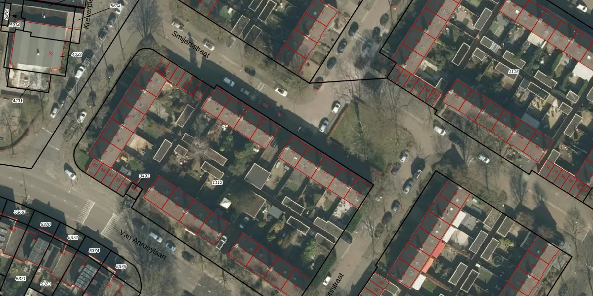 Het perceel waarop Smijersstraat 21 staat heeft een oppervlakte van 4564 m². Dit is een zeer groot perceel. De perceeloppervlakte wordt geregistreerd door het Kadaster. Gedetailleerde informatie over de maten van dit perceel kunt u vinden in het rapport Kadastrale kaart met maatvoering van Smijersstraat 21.