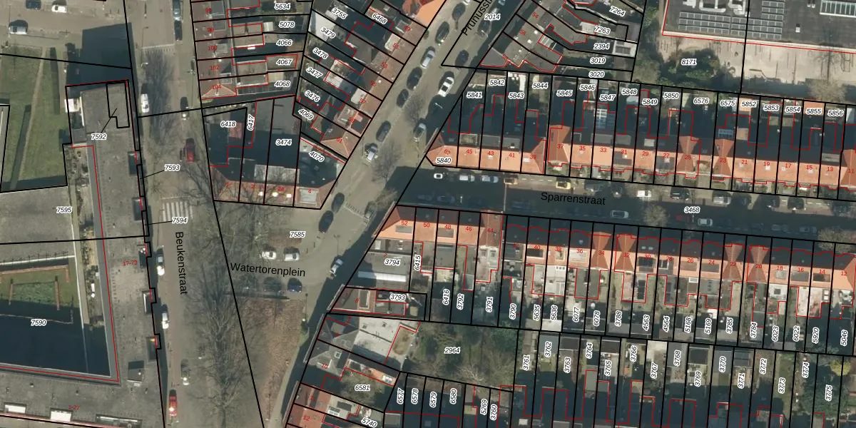 Het perceel waarop Sparrenstraat 50 staat heeft een oppervlakte van 107 m². Dit is een middelgroot perceel. De perceeloppervlakte wordt geregistreerd door het Kadaster. Gedetailleerde informatie over de maten van dit perceel kunt u vinden in het rapport Kadastrale kaart met maatvoering van Sparrenstraat 50.