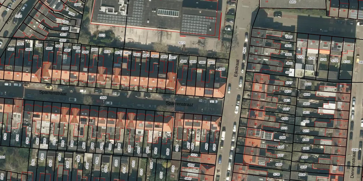 Sparrenstraat 9 is gelegen op kadastraal perceel TBG01P5858. Deze kadastrale aanduiding is uniek en wordt gebruikt door het Kadaster om eigendomsrechten en andere zakelijke rechten vast te leggen. Het perceel maakt onderdeel uit van de kadastrale gemeente Tilburg.