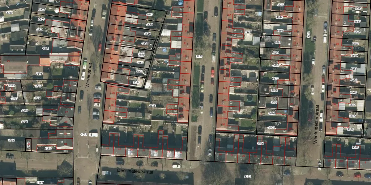 Het perceel waarop Spinmeesterstraat 19 staat heeft een oppervlakte van 4185 m². Dit is een zeer groot perceel. De perceeloppervlakte wordt geregistreerd door het Kadaster. Gedetailleerde informatie over de maten van dit perceel kunt u vinden in het rapport Kadastrale kaart met maatvoering van Spinmeesterstraat 19.