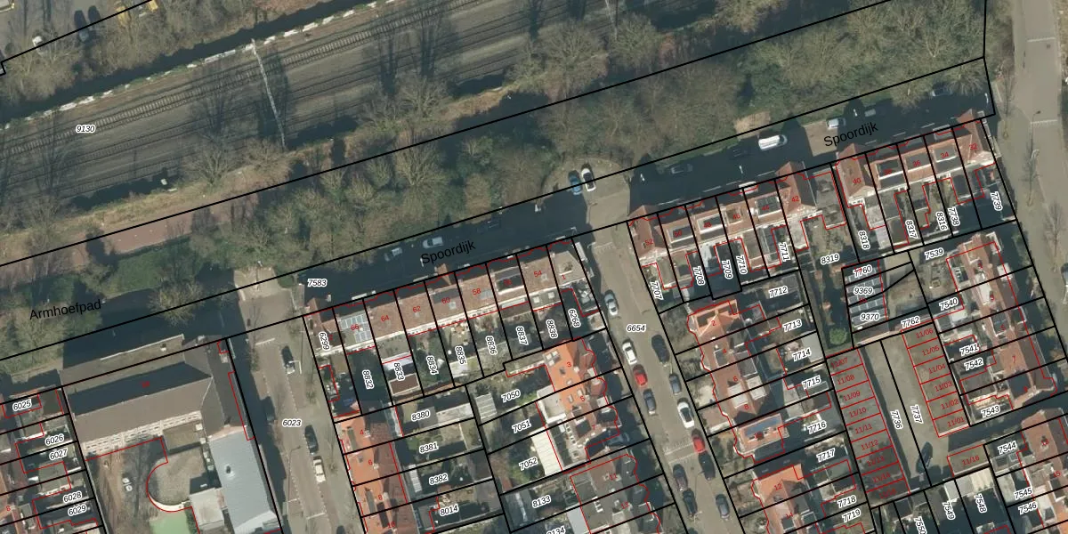 Het perceel waarop Spoordijk 54 staat heeft een oppervlakte van 112 m². Dit is een middelgroot perceel. De perceeloppervlakte wordt geregistreerd door het Kadaster. Gedetailleerde informatie over de maten van dit perceel kunt u vinden in het rapport Kadastrale kaart met maatvoering van Spoordijk 54.