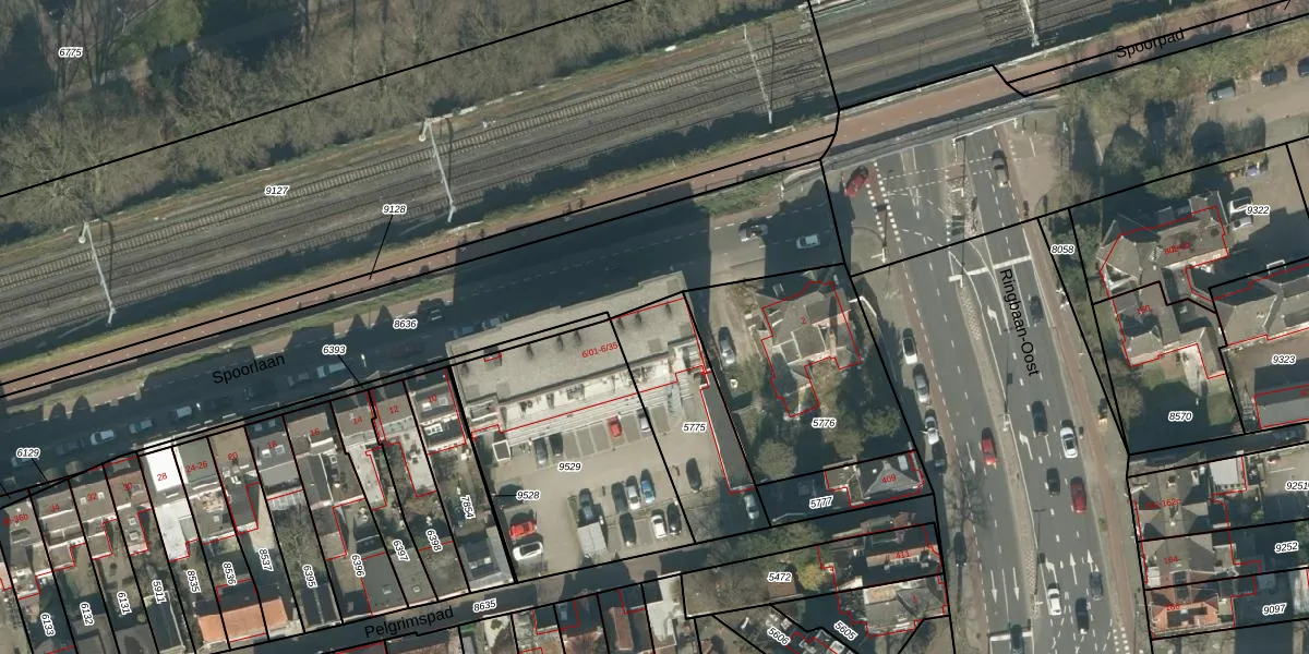 Spoorlaan 6-14 is gelegen op kadastraal perceel TBG01B5775. Deze kadastrale aanduiding is uniek en wordt gebruikt door het Kadaster om eigendomsrechten en andere zakelijke rechten vast te leggen. Het perceel maakt onderdeel uit van de kadastrale gemeente Tilburg.