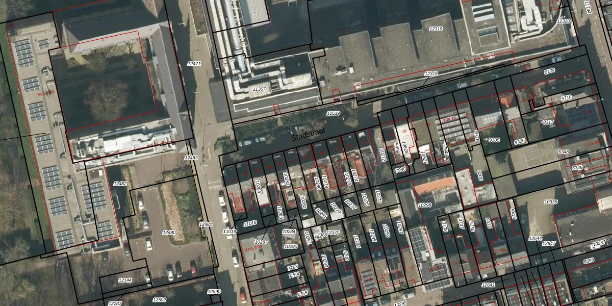 Het perceel waarop Stadstraat 30 staat heeft een oppervlakte van 93 m². Dit is een klein perceel. De perceeloppervlakte wordt geregistreerd door het Kadaster. Gedetailleerde informatie over de maten van dit perceel kunt u vinden in het rapport Kadastrale kaart met maatvoering van Stadstraat 30.