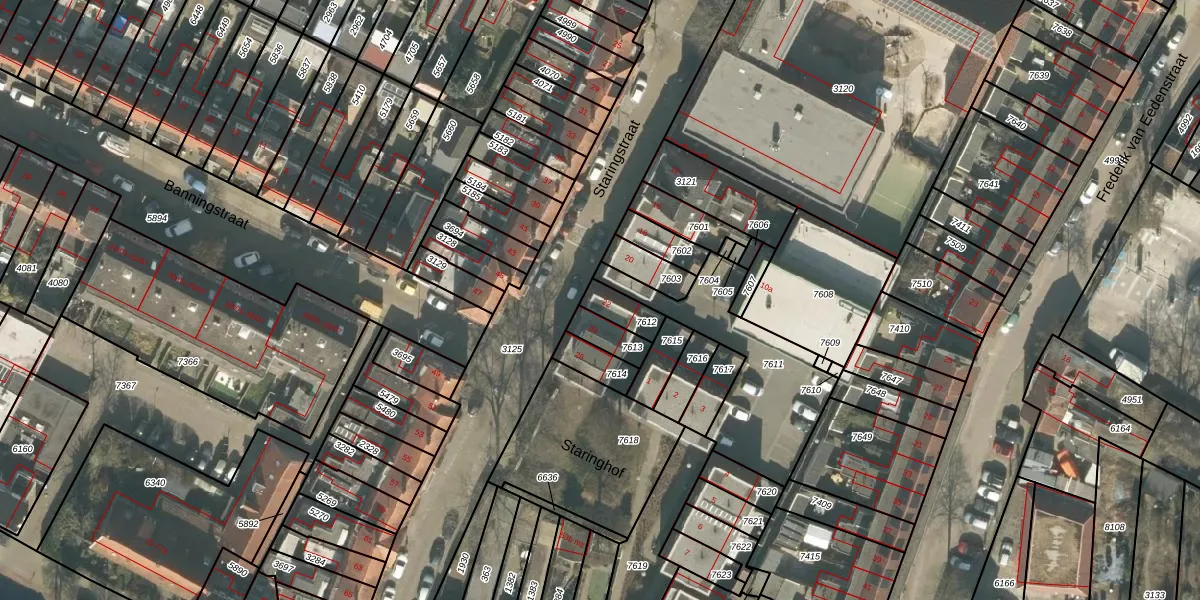 Het perceel waarop Staringstraat 22 staat heeft een oppervlakte van 70 m². Dit is een klein perceel. De perceeloppervlakte wordt geregistreerd door het Kadaster. Gedetailleerde informatie over de maten van dit perceel kunt u vinden in het rapport Kadastrale kaart met maatvoering van Staringstraat 22.