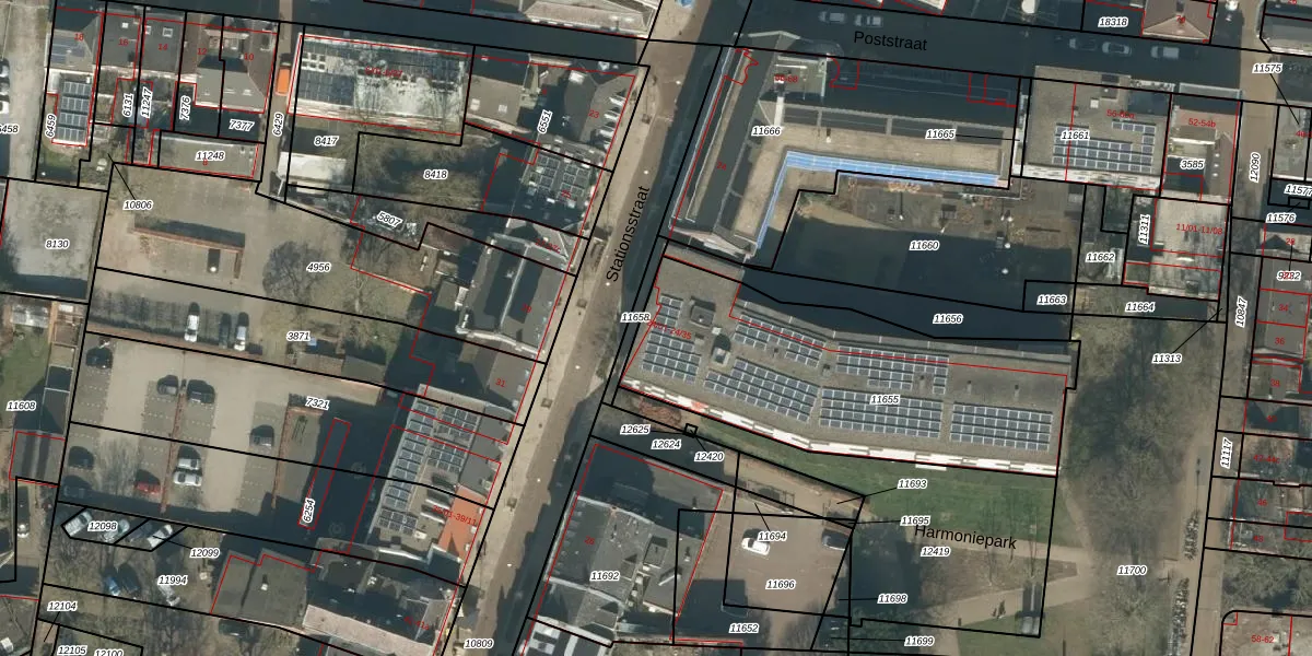 Het perceel waarop Stationsstraat 24-09 staat heeft een oppervlakte van 1383 m². Dit is een zeer groot perceel. De perceeloppervlakte wordt geregistreerd door het Kadaster. Gedetailleerde informatie over de maten van dit perceel kunt u vinden in het rapport Kadastrale kaart met maatvoering van Stationsstraat 24-09.
