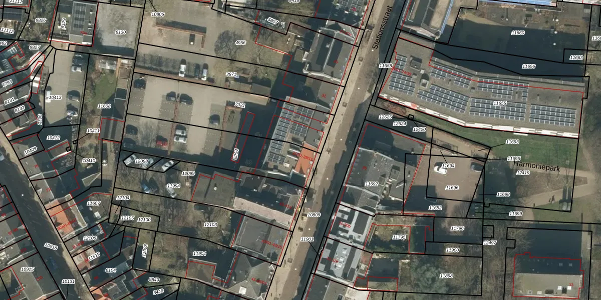 Het perceel waarop Stationsstraat 39-01 staat heeft een oppervlakte van 811 m². Dit is een groot perceel. De perceeloppervlakte wordt geregistreerd door het Kadaster. Gedetailleerde informatie over de maten van dit perceel kunt u vinden in het rapport Kadastrale kaart met maatvoering van Stationsstraat 39-01.