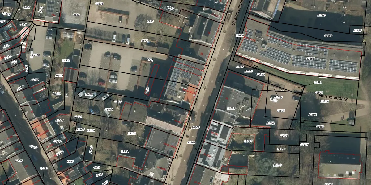 Het perceel waarop Stationsstraat 39-02 staat heeft een oppervlakte van 811 m². Dit is een groot perceel. De perceeloppervlakte wordt geregistreerd door het Kadaster. Gedetailleerde informatie over de maten van dit perceel kunt u vinden in het rapport Kadastrale kaart met maatvoering van Stationsstraat 39-02.