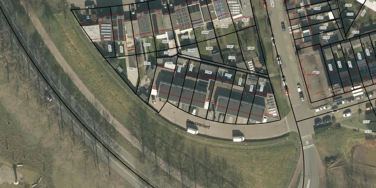 Stavorenerf 6 is gelegen op kadastraal perceel TBG01AG7095. Deze kadastrale aanduiding is uniek en wordt gebruikt door het Kadaster om eigendomsrechten en andere zakelijke rechten vast te leggen. Het perceel maakt onderdeel uit van de kadastrale gemeente Tilburg.