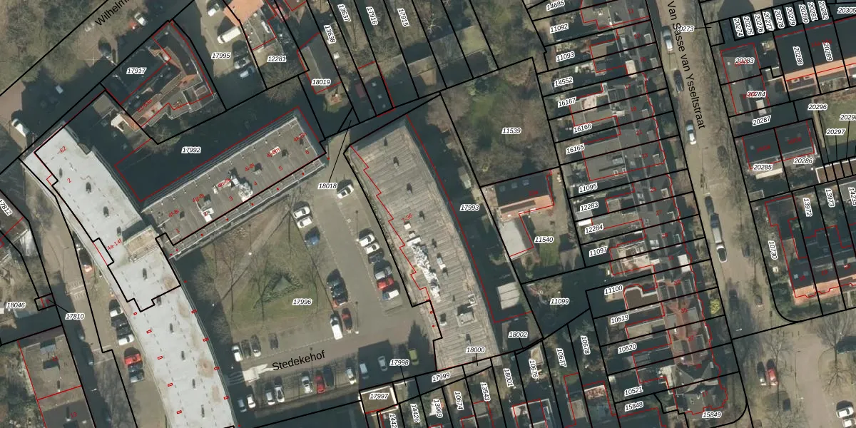 Stedekehof 24 is gelegen op kadastraal perceel TBG01N17993. Deze kadastrale aanduiding is uniek en wordt gebruikt door het Kadaster om eigendomsrechten en andere zakelijke rechten vast te leggen. Het perceel maakt onderdeel uit van de kadastrale gemeente Tilburg.