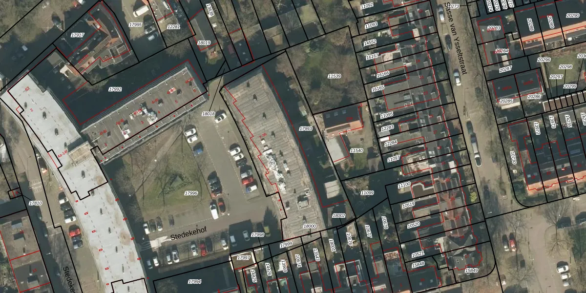 Stedekehof 33 is gelegen op kadastraal perceel TBG01N17993. Deze kadastrale aanduiding is uniek en wordt gebruikt door het Kadaster om eigendomsrechten en andere zakelijke rechten vast te leggen. Het perceel maakt onderdeel uit van de kadastrale gemeente Tilburg.