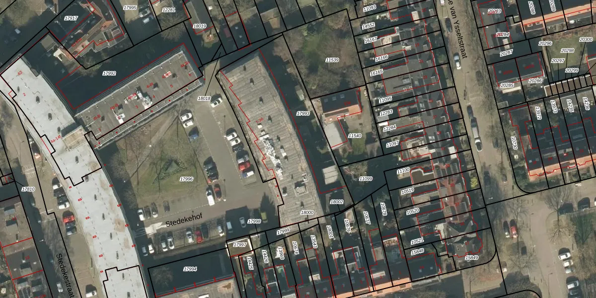 Het perceel waarop Stedekehof 34 staat heeft een oppervlakte van 1475 m². Dit is een zeer groot perceel. De perceeloppervlakte wordt geregistreerd door het Kadaster. Gedetailleerde informatie over de maten van dit perceel kunt u vinden in het rapport Kadastrale kaart met maatvoering van Stedekehof 34.