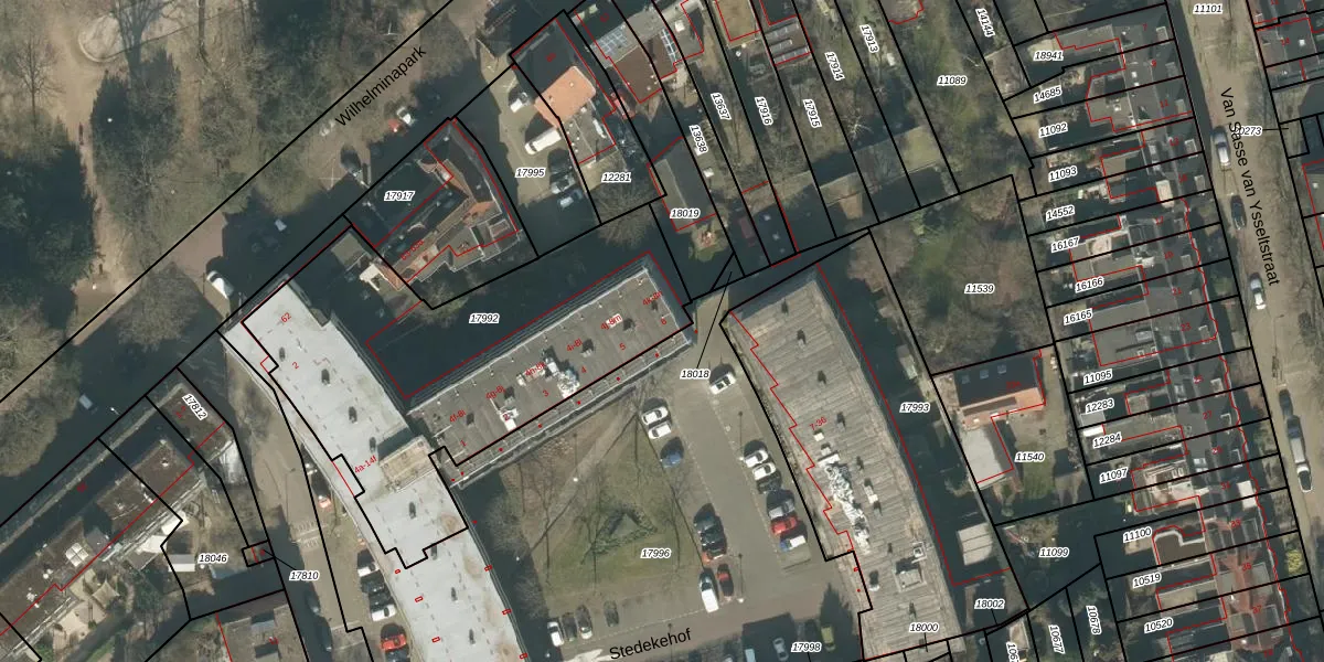 Het perceel waarop Stedekehof 6 staat heeft een oppervlakte van 1715 m². Dit is een zeer groot perceel. De perceeloppervlakte wordt geregistreerd door het Kadaster. Gedetailleerde informatie over de maten van dit perceel kunt u vinden in het rapport Kadastrale kaart met maatvoering van Stedekehof 6.