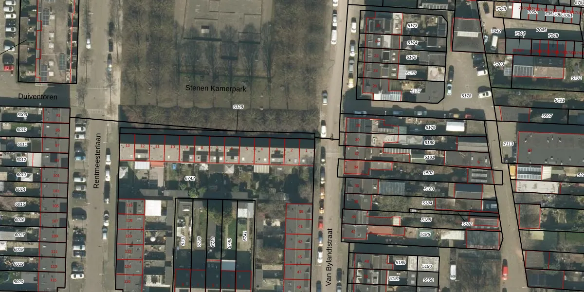 Het perceel waarop Stenen Kamerpark 2 staat heeft een oppervlakte van 2748 m². Dit is een zeer groot perceel. De perceeloppervlakte wordt geregistreerd door het Kadaster. Gedetailleerde informatie over de maten van dit perceel kunt u vinden in het rapport Kadastrale kaart met maatvoering van Stenen Kamerpark 2.