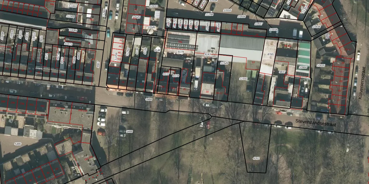 Stevenzandsestraat 21 is gelegen op kadastraal perceel TBG01M9179. Deze kadastrale aanduiding is uniek en wordt gebruikt door het Kadaster om eigendomsrechten en andere zakelijke rechten vast te leggen. Het perceel maakt onderdeel uit van de kadastrale gemeente Tilburg.