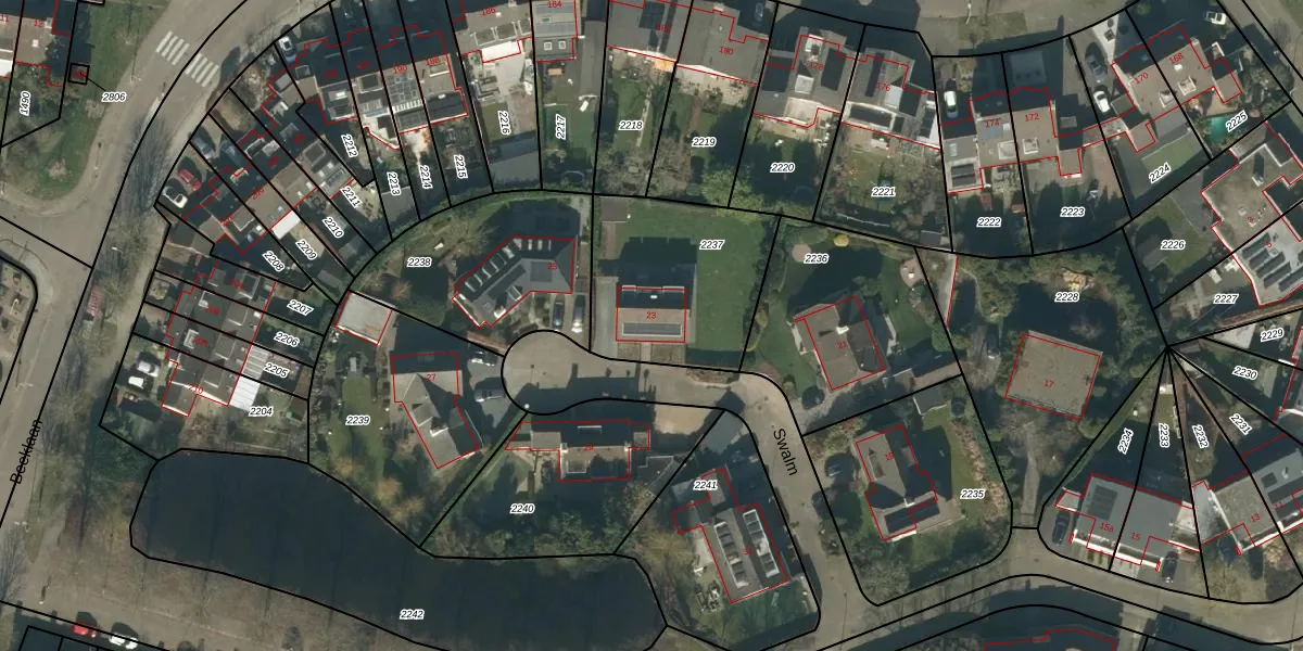 Swalm 23 is gelegen op kadastraal perceel TBG01AA2237. Deze kadastrale aanduiding is uniek en wordt gebruikt door het Kadaster om eigendomsrechten en andere zakelijke rechten vast te leggen. Het perceel maakt onderdeel uit van de kadastrale gemeente Tilburg.