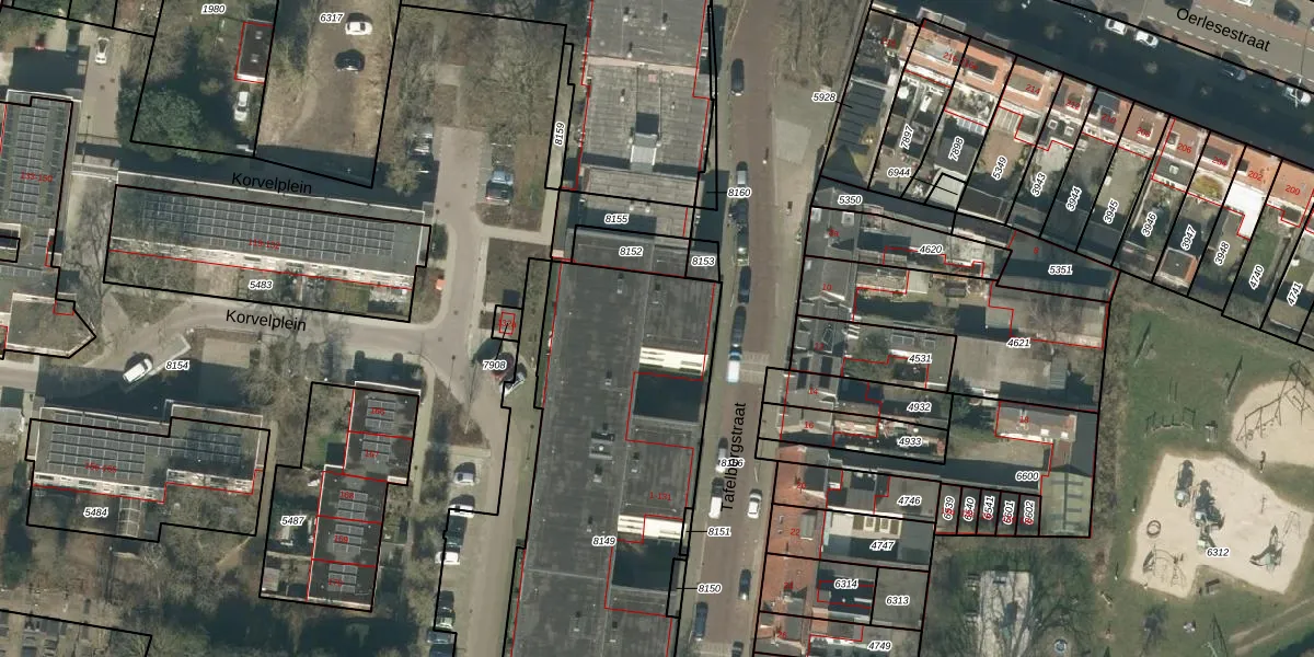 Het perceel waarop Tafelbergstraat 55 staat heeft een oppervlakte van 2080 m². Dit is een zeer groot perceel. De perceeloppervlakte wordt geregistreerd door het Kadaster. Gedetailleerde informatie over de maten van dit perceel kunt u vinden in het rapport Kadastrale kaart met maatvoering van Tafelbergstraat 55.
