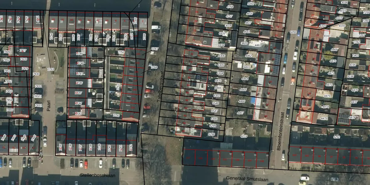 Het perceel waarop Tafelbergstraat 86 staat heeft een oppervlakte van 147 m². Dit is een middelgroot perceel. De perceeloppervlakte wordt geregistreerd door het Kadaster. Gedetailleerde informatie over de maten van dit perceel kunt u vinden in het rapport Kadastrale kaart met maatvoering van Tafelbergstraat 86.