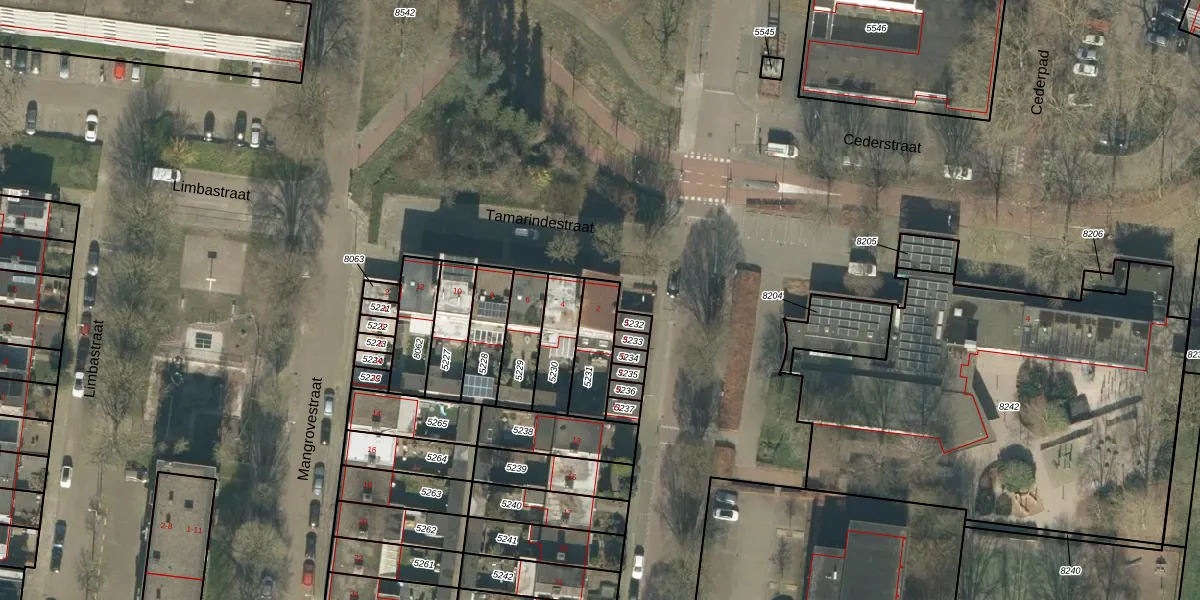 Het perceel waarop Tamarindestraat 2 staat heeft een oppervlakte van 142 m². Dit is een middelgroot perceel. De perceeloppervlakte wordt geregistreerd door het Kadaster. Gedetailleerde informatie over de maten van dit perceel kunt u vinden in het rapport Kadastrale kaart met maatvoering van Tamarindestraat 2.