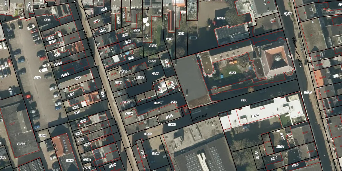 Het adres is gelegen op perceel 11163 in de sectie M en de kadastrale gemeente Tilburg. De kadastrale aanduiding is aldus TBG01-M-11163. De gemiddelde perceelgrootte in Tilburg is 1264,33 m². Dit perceel is kleiner: de perceeloppervlakte bedraagt 76 m². Het kleinste perceel in de kadastrale gemeente is 0 m² groot. De grootste perceeloppervlakte is 87,4 ha. Op het perceel bevinden zich geen andere adressen. De huidige grenzen van het perceel zijn digitaal in de Basisregistratie Kadaster (BRK) geregistreerd op 07-03-2006.