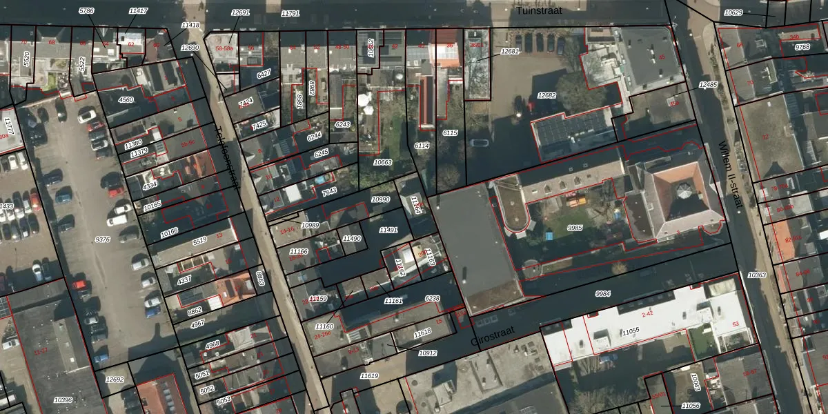 Het adres is gelegen op perceel 11164 in de sectie M en de kadastrale gemeente Tilburg. De kadastrale aanduiding is aldus TBG01-M-11164. De gemiddelde perceelgrootte in Tilburg is 1264,33 m². Dit perceel is kleiner: de perceeloppervlakte bedraagt 96 m². Het kleinste perceel in de kadastrale gemeente is 0 m² groot. De grootste perceeloppervlakte is 87,4 ha. Dit is het enige adres dat aanwezig is op het perceel. De laatste wijziging in het de Basisregistratie Kadaster (BRK) was op 07-03-2006.