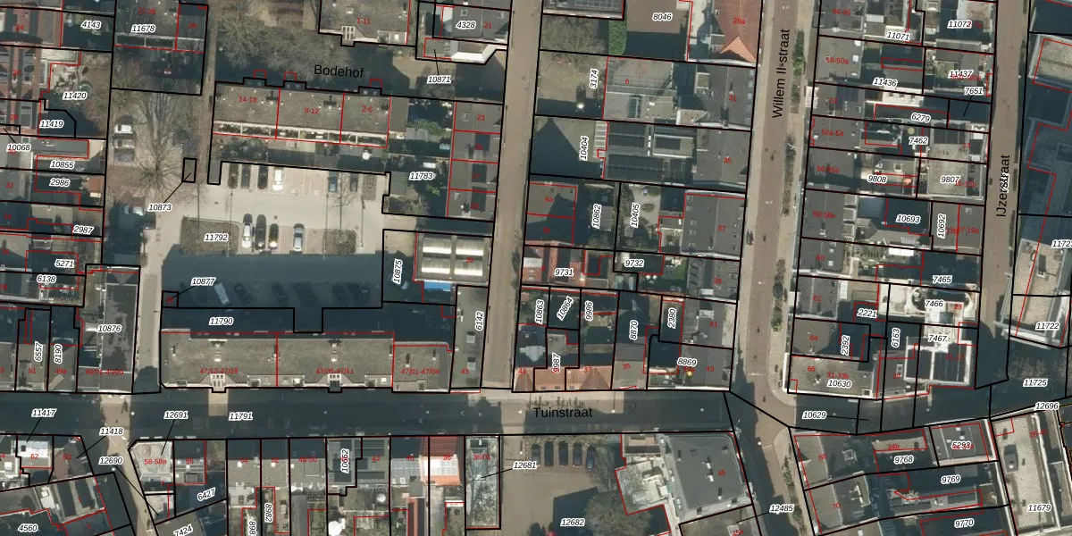 Het adres is gelegen op perceel 9731 in de sectie M en de kadastrale gemeente Tilburg. De kadastrale aanduiding is aldus TBG01-M-9731. Het perceel is kleiner dan gemiddeld in Tilburg. Het perceel is 139 m² groot, terwijl het gemiddelde ligt op 1264,33 m². De grootste perceeloppervlakte in de kadastrale gemeente is 87,4 ha. De kleinste oppervlakte bedraagt 0 m². Dit is het enige adres dat aanwezig is op het perceel. In de Basisregistratie Kadaster (BRK) werden de grenzen van het perceel geregistreerd op 07-03-2006.