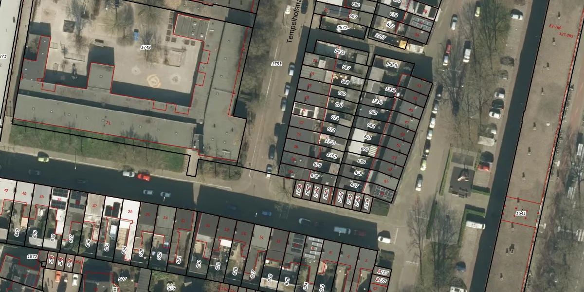 Het perceel waarop Tempelhofstraat 36 staat heeft een oppervlakte van 91 m². Dit is een klein perceel. De perceeloppervlakte wordt geregistreerd door het Kadaster. Gedetailleerde informatie over de maten van dit perceel kunt u vinden in het rapport Kadastrale kaart met maatvoering van Tempelhofstraat 36.